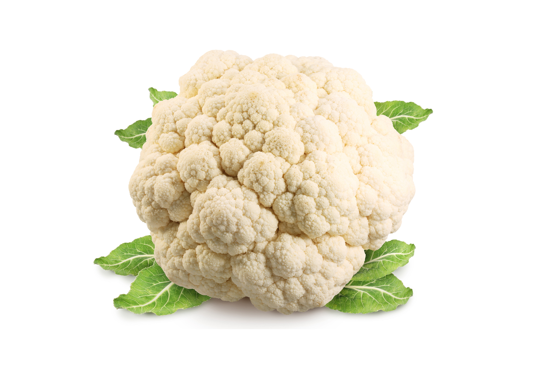 Cauliflower plants growing in a nursery. An annual plant that reproduces by seed, the cauliflower head is composed of a (generally) white inflorescence meristem